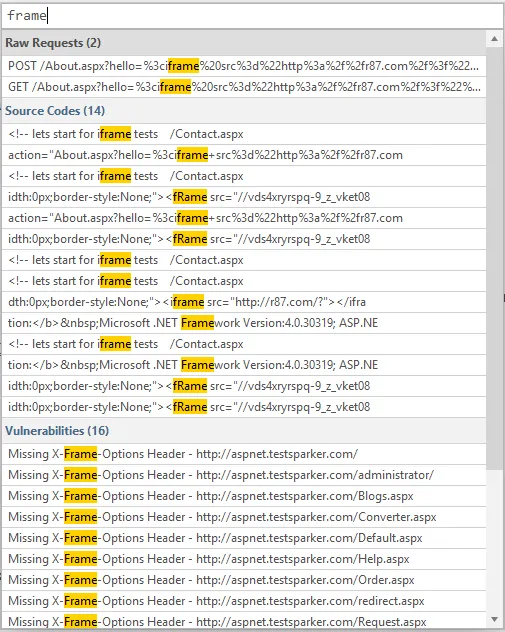 We’ve added a scan search feature that allows searching for anything in the scan. Users will be able to conduct a full-text search on a scan among all the requests, responses and vulnerabilities.