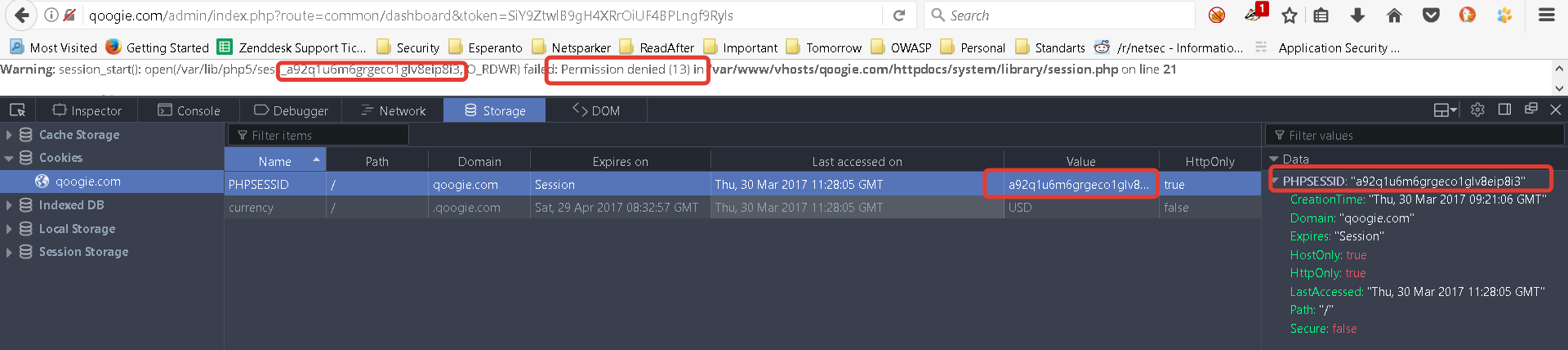 If I can manage to login into fvvitter.com's Opencart instance as an administrator, I can use the same cookie on qoogie.com.