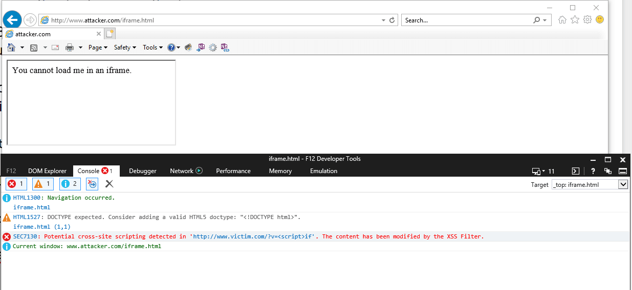 Let’s look at an example of a Frame Busting mechanism. If the developer figures out that the website was loaded within a frame, they can redirect the top window to their website using this code: